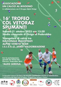 Nel pomeriggio, alle ore 15:30, allo stadio comunale di Onigo di Pederobba, la squadra del nostro Istituto scenderà in campo per un triangolare di calcio solidale con la Nazionale Italiana Magistrati e la Rappresentativa Veneta Alpini.